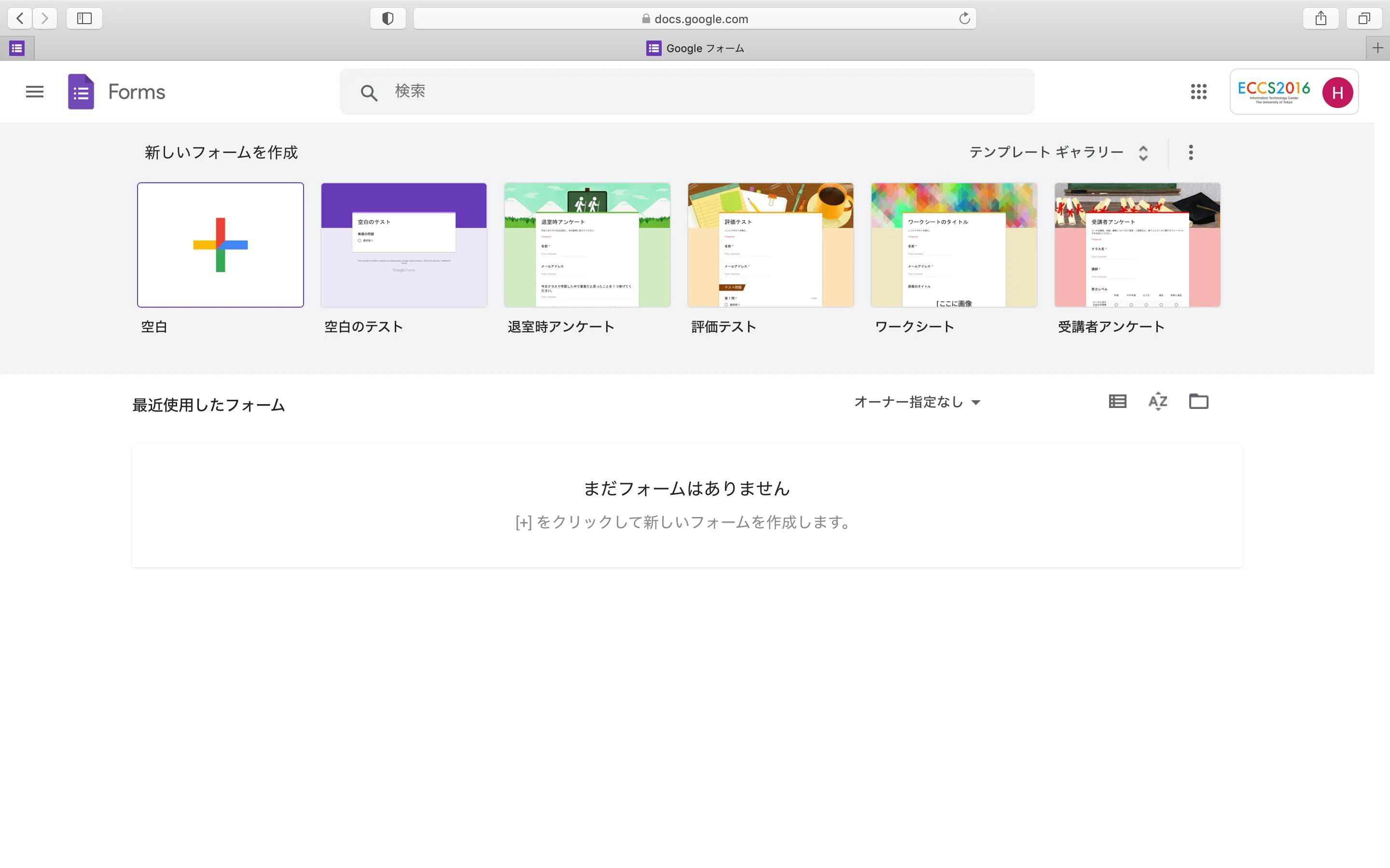 Googleアカウント(ECCSクラウドメールのアカウント)にログインしていれば,ブラウザから使用可能です(以下,ECCSクラウドメールのアカウントにログインしている前提で説明します).