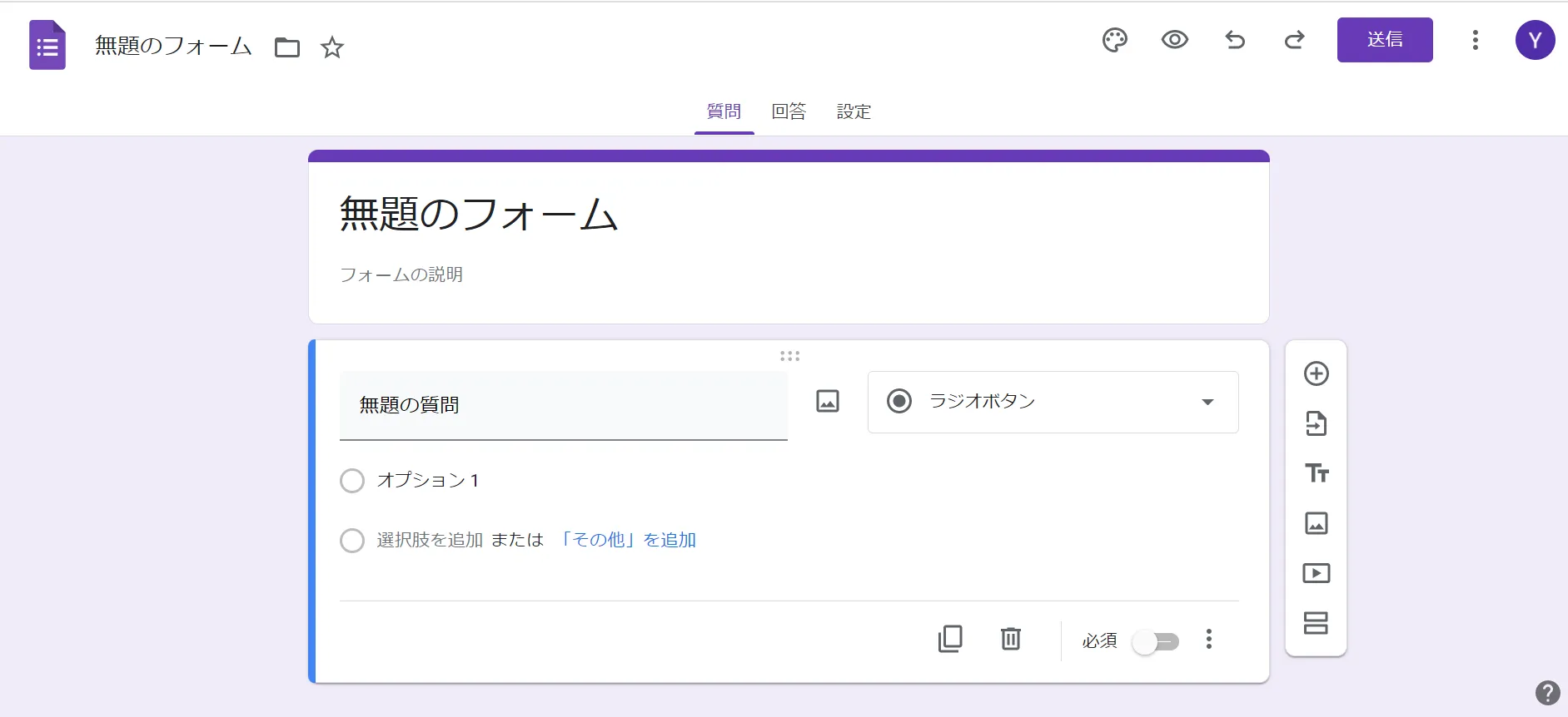 「新しいフォームの作成」欄にある,1番左の「空白」をクリックします.