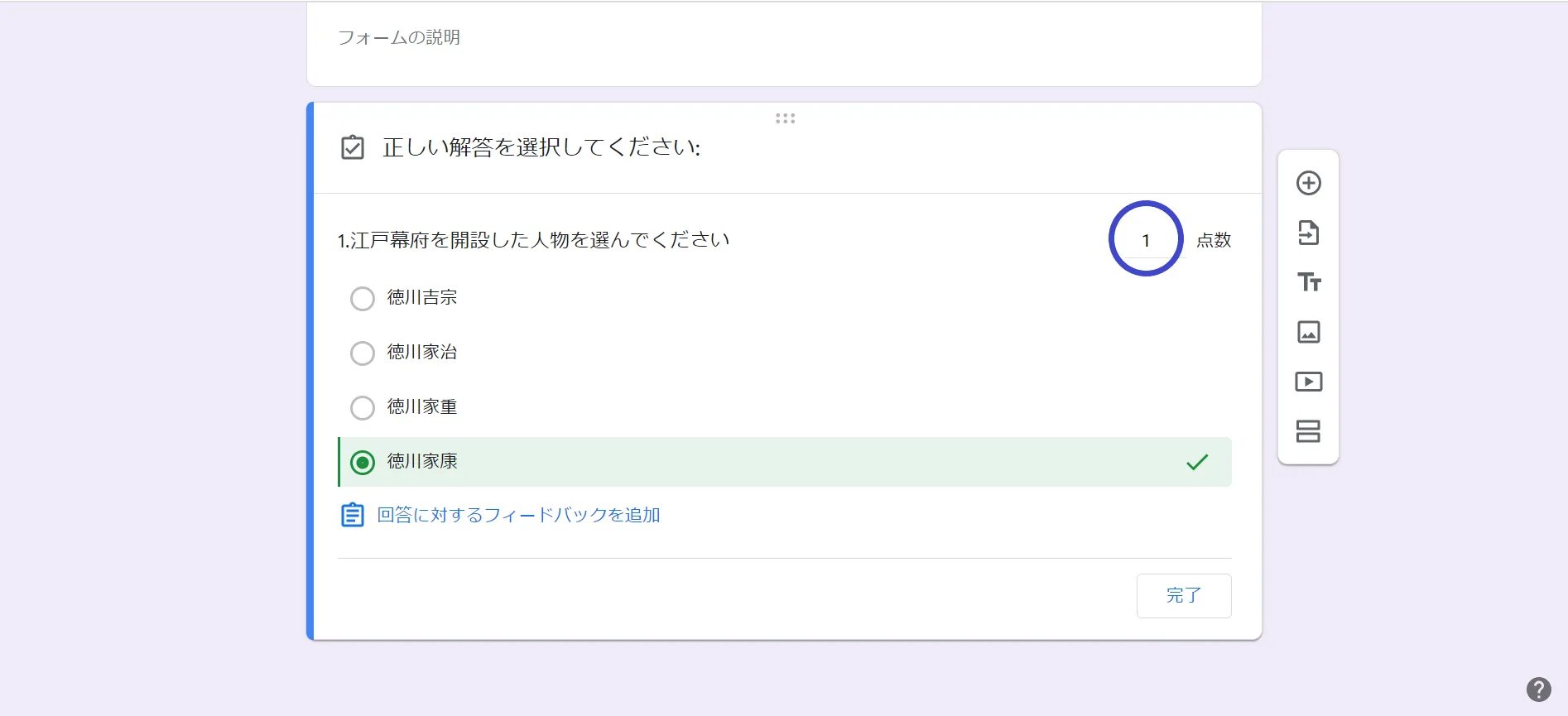 「回答に対するフィードバックを追加」から,文章やリンク,動画にて問題の解説を加えることもできます.