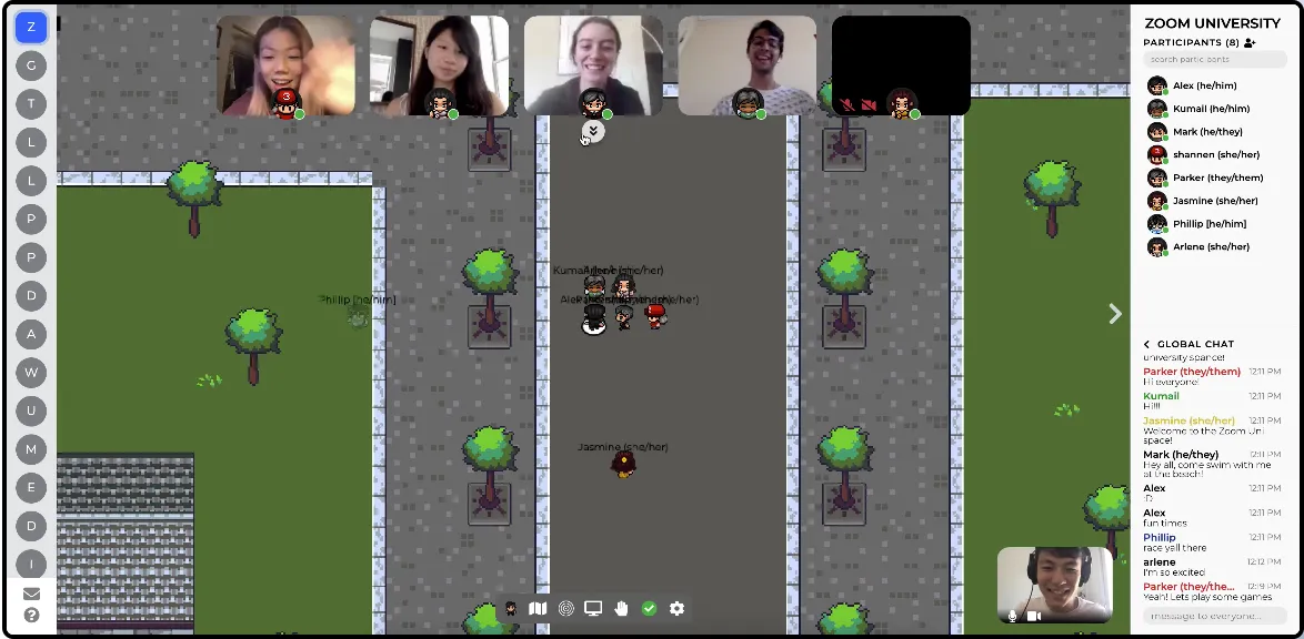 レトロゲーム風の遊び心のあるUIが特徴のオンラインコミュニケーションツールです.自分のアバターを操作して部屋を自在に行き来することができ,出勤やオフィスでの勤務を仮想的に体験することができます.バーチャルオフィスという実際のオフィスの環境をネット上に作るサービスの一つです.