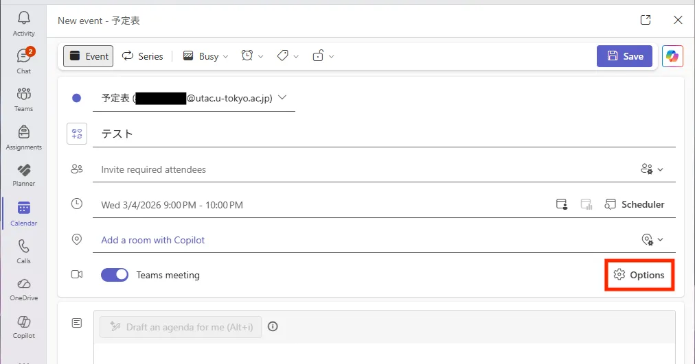 - If creating it as a new event, turn on the “Teams meeting” toggle if it is off.
