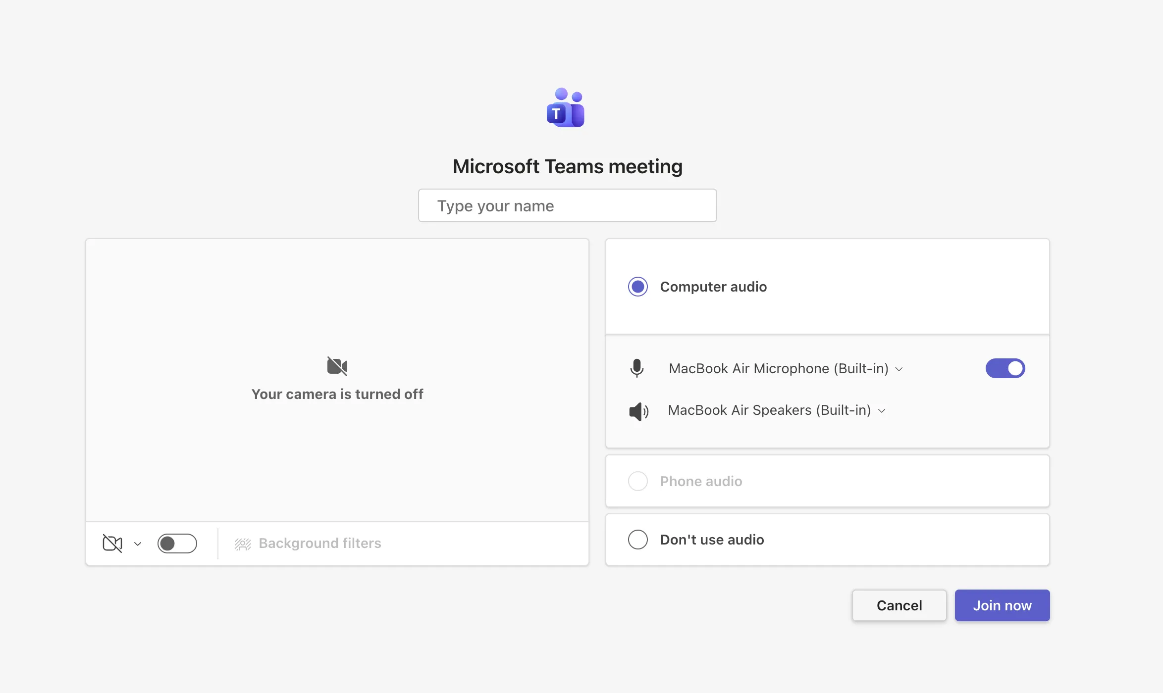 - Enter the display name you want to use in the “Type your name” field, and click “Join now”.