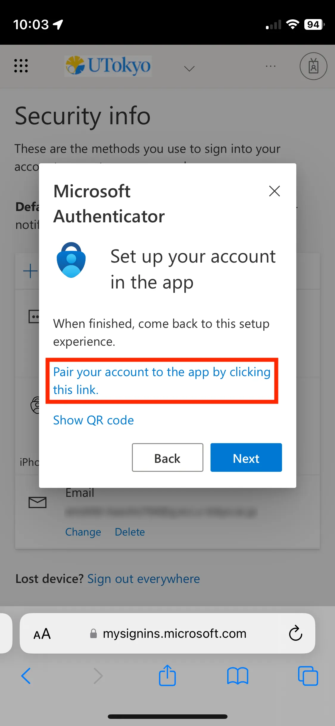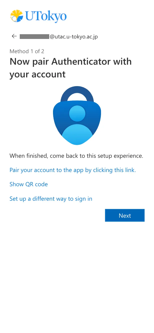 “Microsoft Authenticator” is an MFA authentication application provided by Microsoft. Using this app is convenient since UTokyo Account’s MFA adopts Microsoft’s system. If you have more than one phone, you can register the same authenticator apps on these phones, making them two or more verification methods.