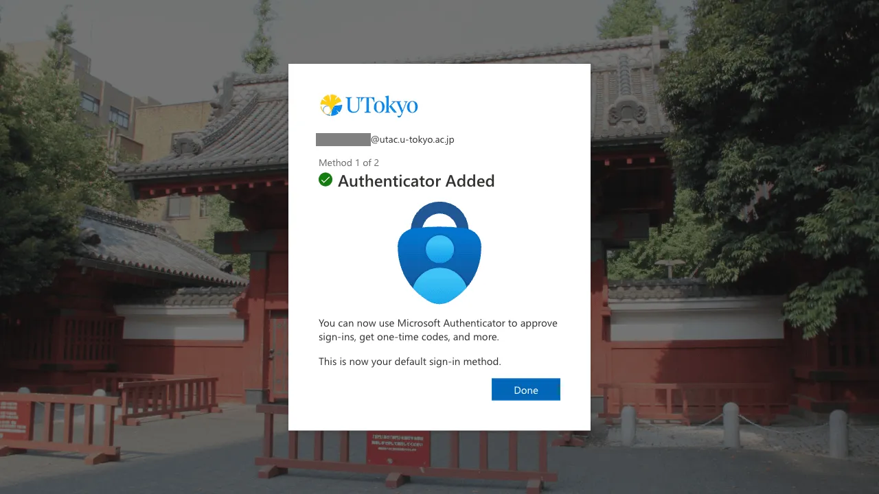 You have completed the initial setup procedures for UTokyo Account, but it will take about 30 minutes for the account settings to be reflected in the system after these procedures. If you want to use systems that do not allow you to sign in until the multi-factor authentication settings are completed, please be patient and wait for a while.