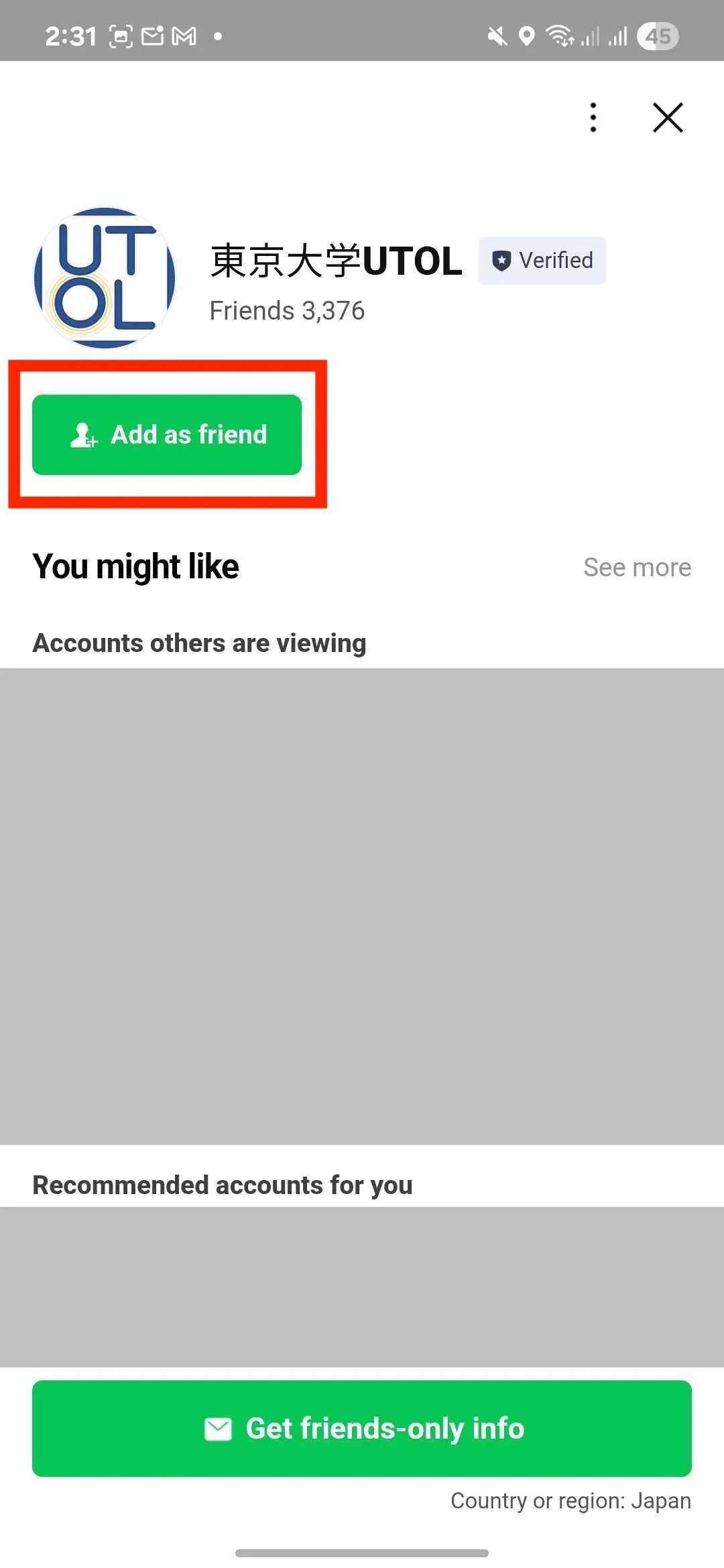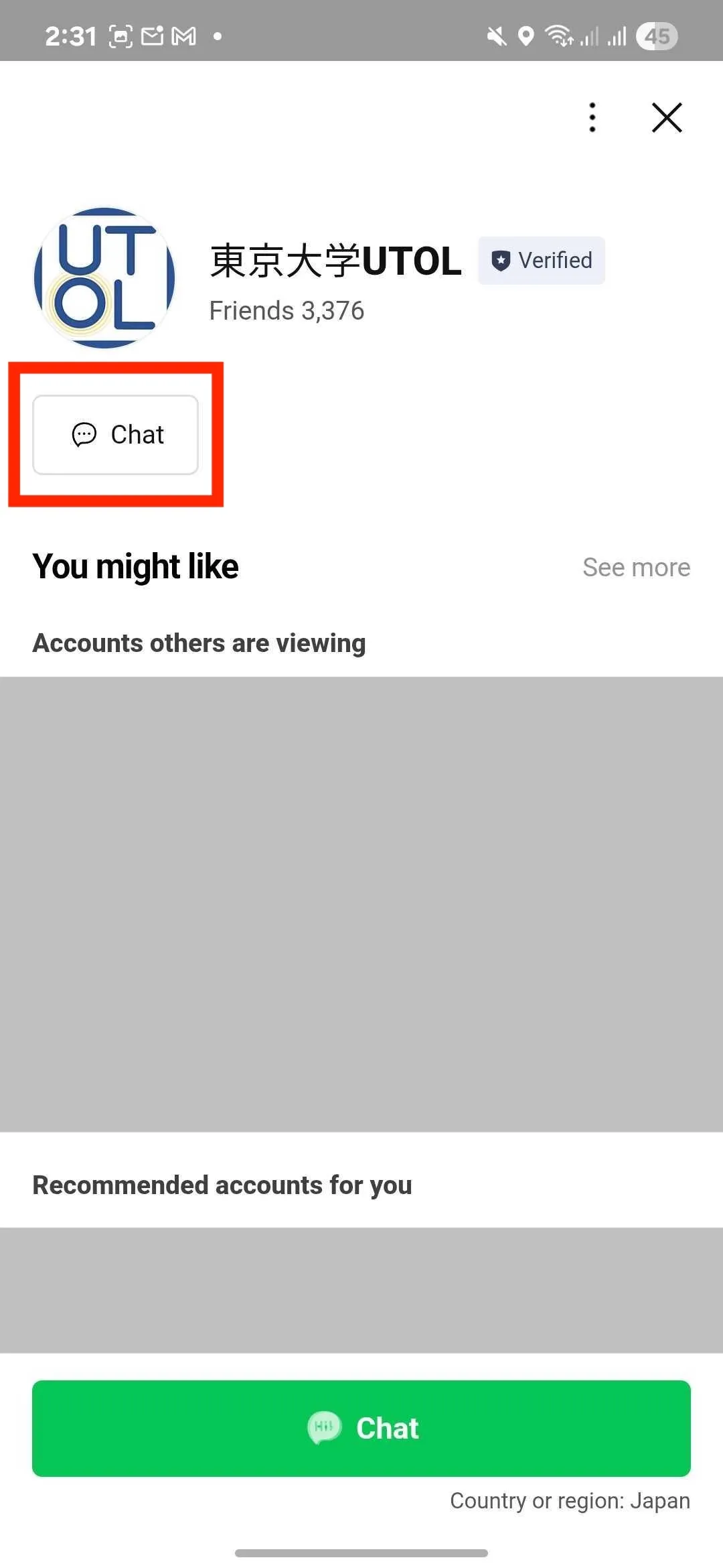 - Look for “東京大学 UTOL” under the “official account” tab, or search for it in the search window, then press and hold the “東京大学 UTOL”.