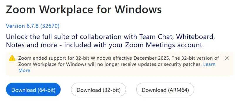 - Click the “Download” button for “Zoom Workplace”. The Zoom Workplace installer will be downloaded. (“Zoom Workplace” is the name of the application used for Zoom.)
