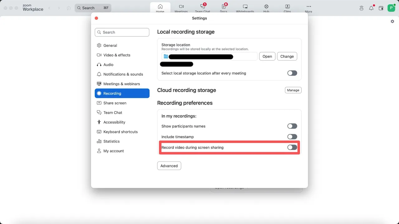 - To separately record only the active speaker, only Gallery View, or only shared content: “Record active speaker, gallery view and shared screen separately”.