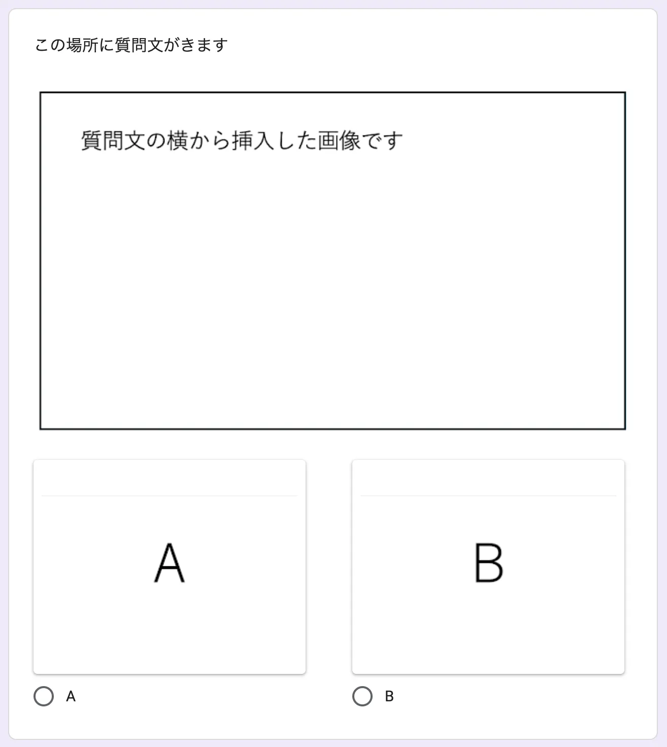 • 実際に画像を挿入すると,回答画面は以下のように表示されます.質問文の横から挿入した画像は質問文の下に,選択肢の横から挿入した画像は選択肢の上に表示されます.