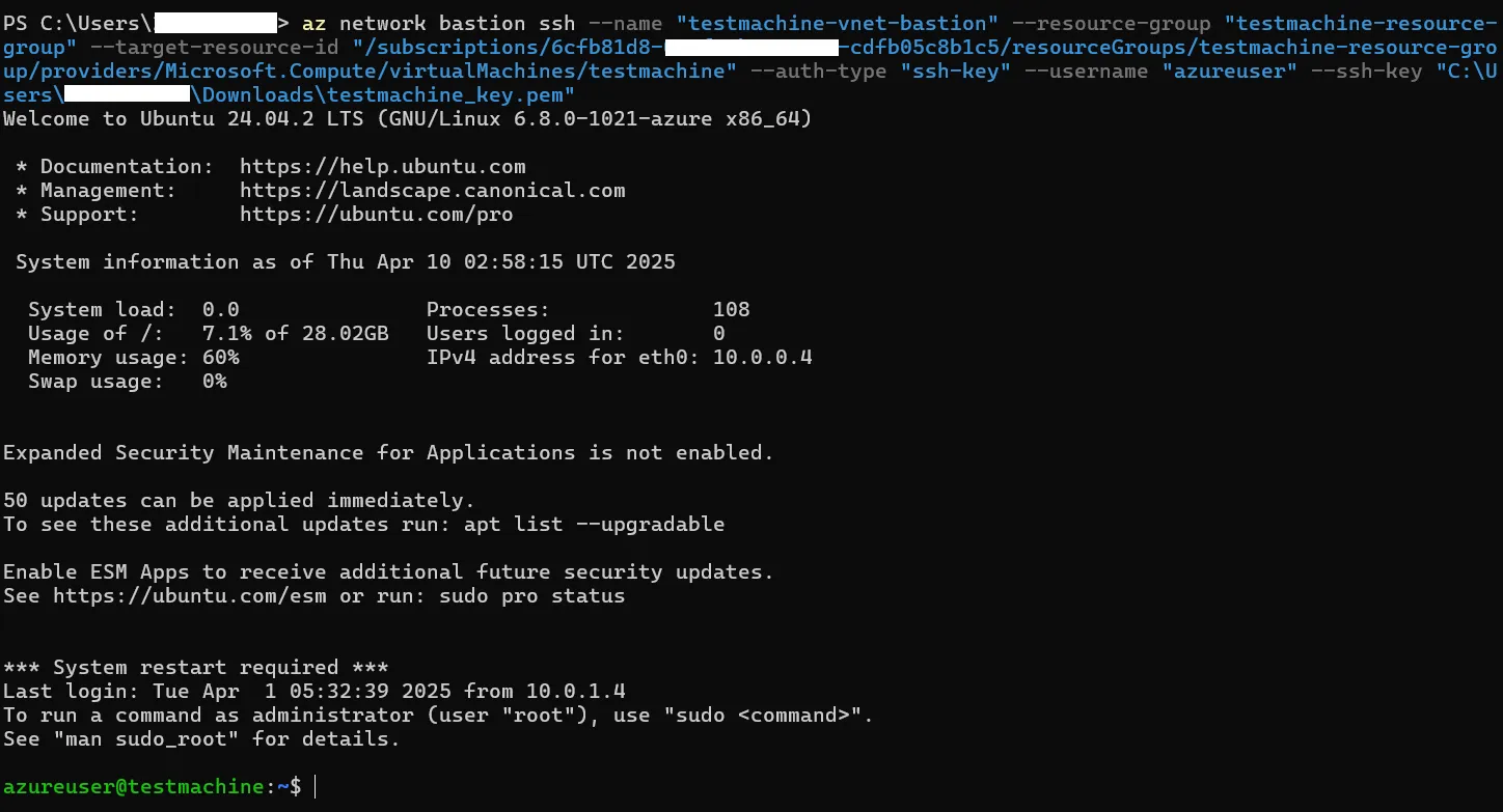 Bastion サービスはブラウザ上で VM のコマンドラインインターフェース(CLI)にアクセスすることが想定されていますが,Azure CLI の機能を使うと,ローカル端末のターミナルからコマンドで接続することが可能です.