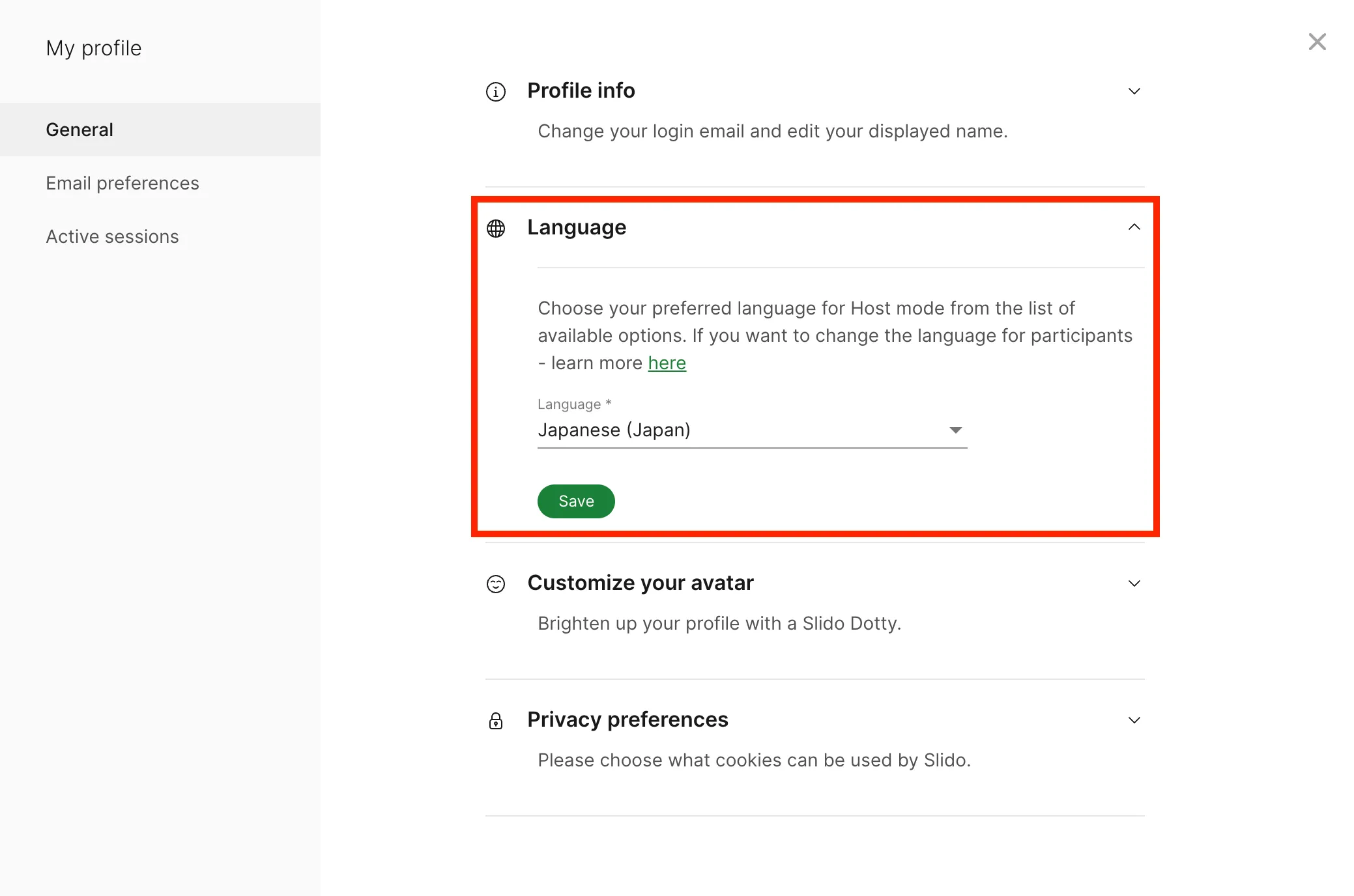 2. 「General」欄の設定項目から「Language」を選択してください.「Japanese (Japan)」を選択し,「Save」をクリックすると,メニューなどが日本語で表示されるようになります.