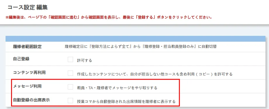 自己登録・履修者範囲設定