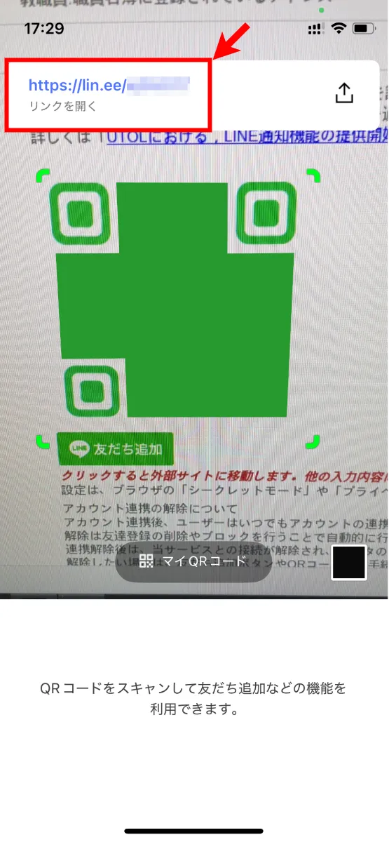 • PCなど,それ以外の端末の場合,LINEアプリで画面上のQRコードを読み取ってください.