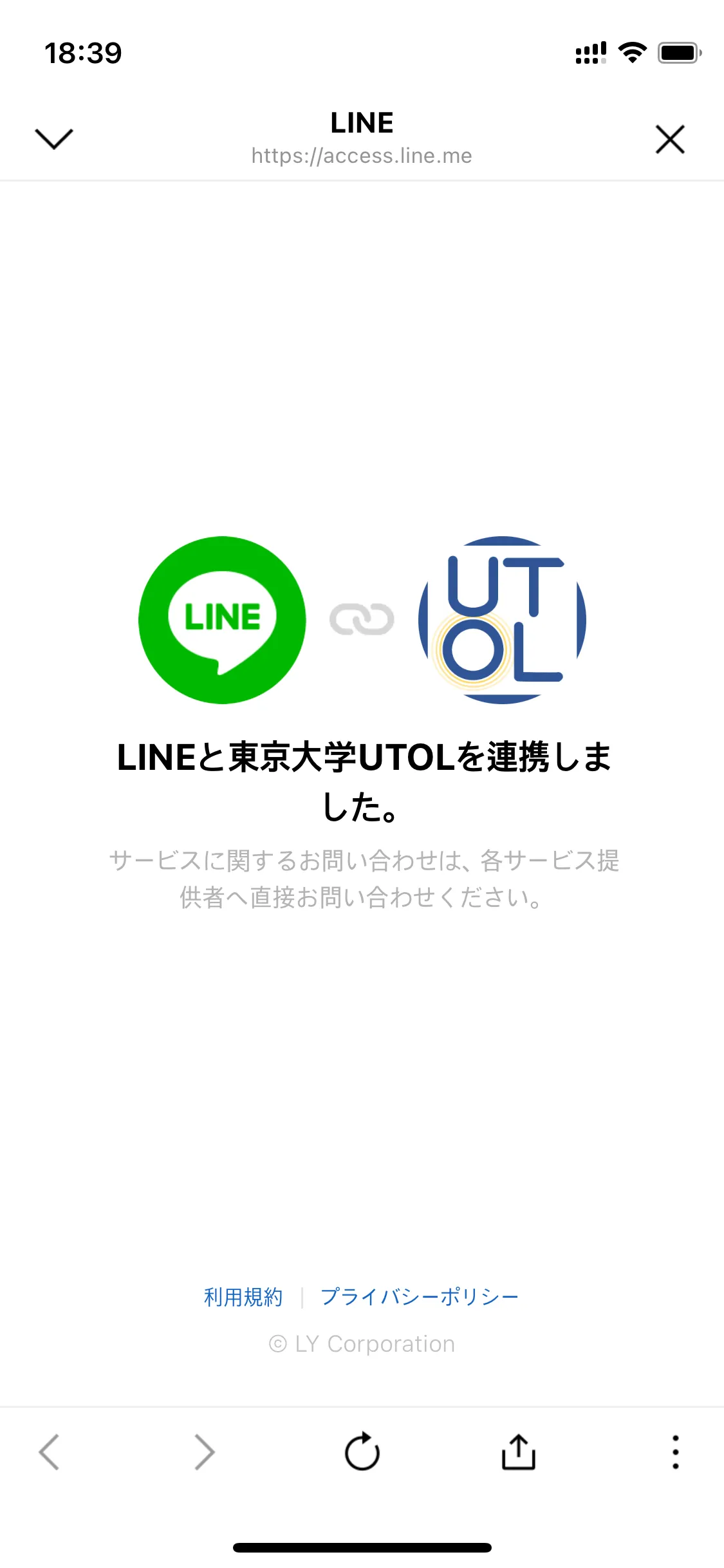 6. 「LINEと東京大学 UTOLを連携しました。」というメッセージが表示されたことを確認してください.