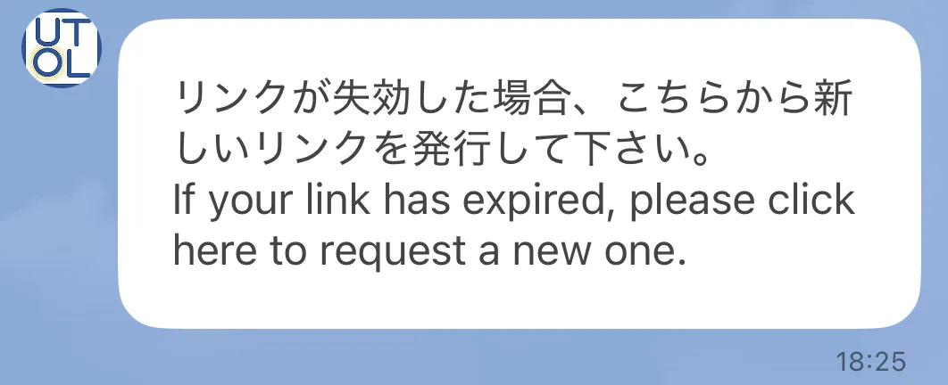 5. 「東京大学 UTOL」からメッセージが送られます.メッセージ内のリンクを開くとUTOLへのログインを求められますので,ログインしてください. 「こちらからUTOLにログインし連携を完了させてください。」というメッセージ内のリンクを開いてください.