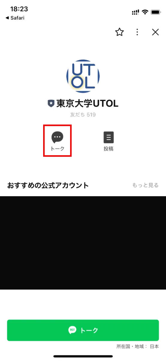 LINE△ (※1)「東京大学 UTOL」との個別トークルーム