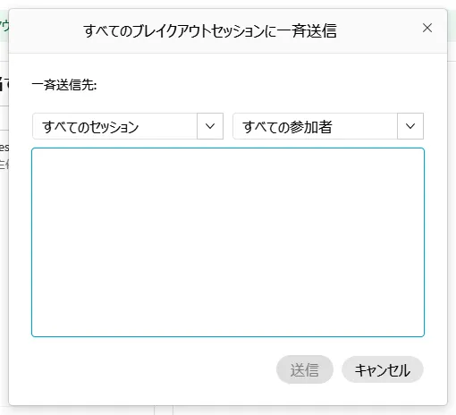 • 「一斉送信」を押すと,特定のセッションやすべてのセッションの参加者にメッセージを送ることができます.
