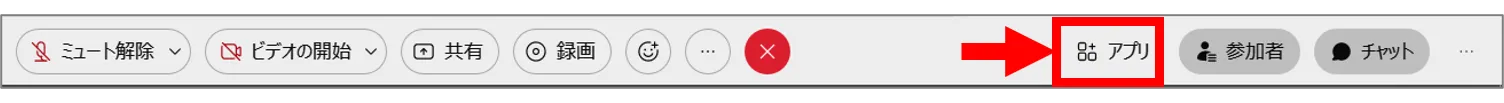 1. Webex Meeting開催中に画面下メニューのアプリボタンを押します.