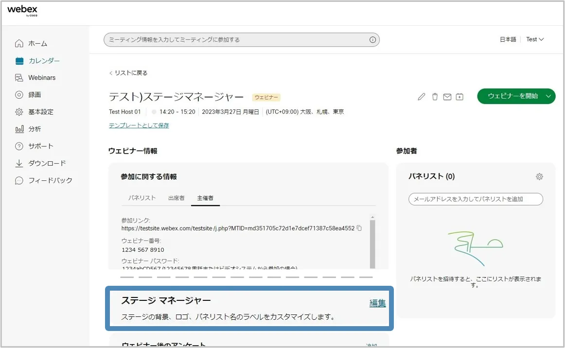 ステージマネージャー(Webex Webinarsのみ)