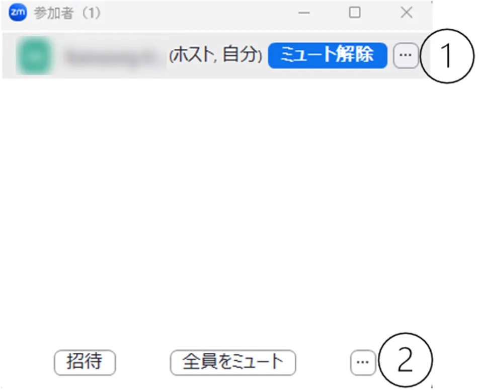 • ①参加者にカーソルを合わせたときに現れる「・・・」